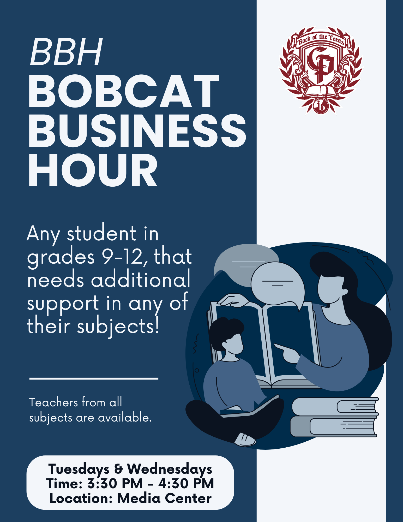 BBH will run every Tuesday and Wednesday from 3:30–4:30 PM